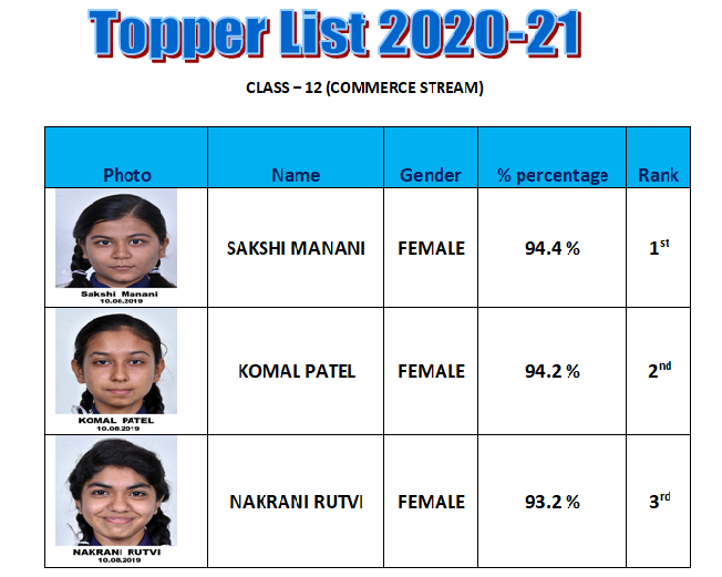 RESULT OF CLASS XII(2020-21) FOR COMMERCE STREAM |