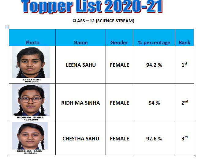 RESULT OF CLASS XII(2019-20) FOR SCIENCE STREAM |