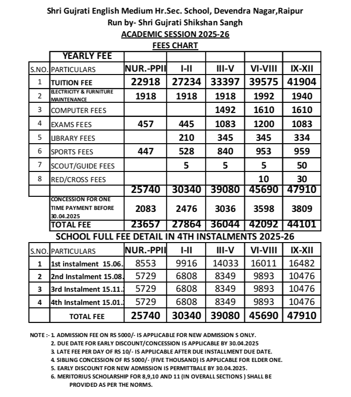 Fee structure of the school