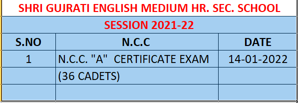 SHRI GUJRATI ENG. MED. HR. SEC. SCHOOL, DEVENDRA NAGAR, RAIPUR, C.G., N.C.C PARTICIPANTS RECORD SHEET , SESSION 2021-22
