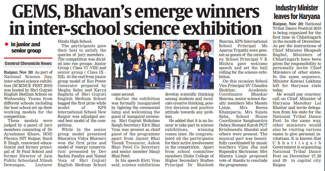 CENTRAL CHRONICLE, RAIPUR, THURSDAY, NOVEMBER 21, 2019 |