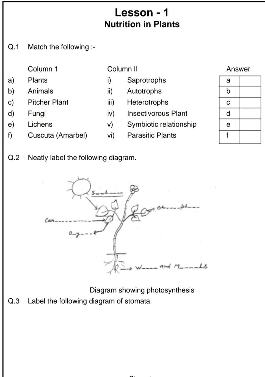 . CLASS 7 SCIENCE WORKSHEET
